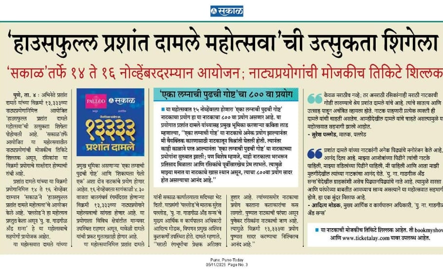 Drama Festival at chinchwad on 24-25 Nov 2023 on Occasion PCMC Sakal Anniversary on 29 Nov 2023