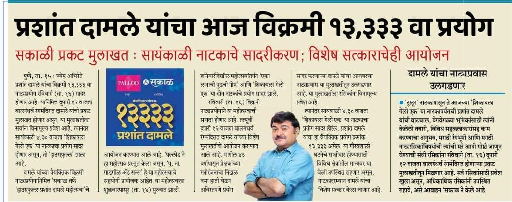 Prashant Damle’s Record-Breaking 13,333rd Performance Today!